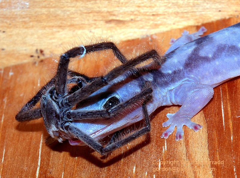 Gecko eating a huntsman spider