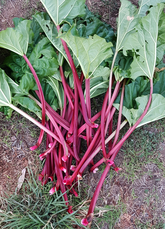 Typical rhubarb harvest most weeks in late spring-summer