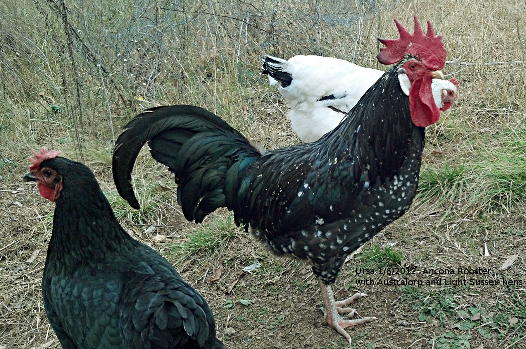 Ursa, the Ancona rooster, June 2012