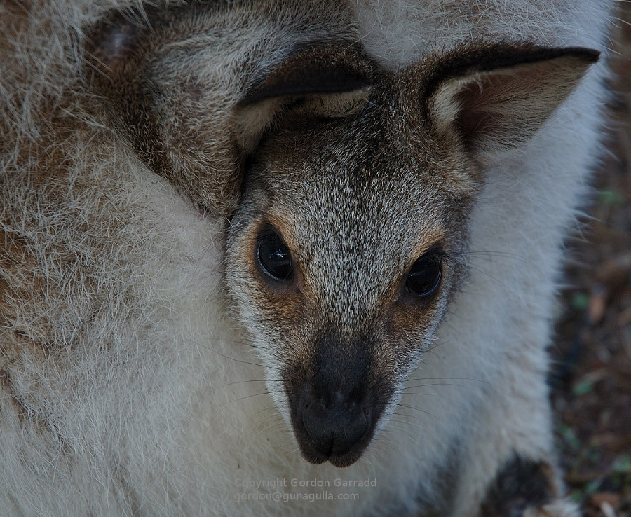 Joey in a friendly wallaby's pouch